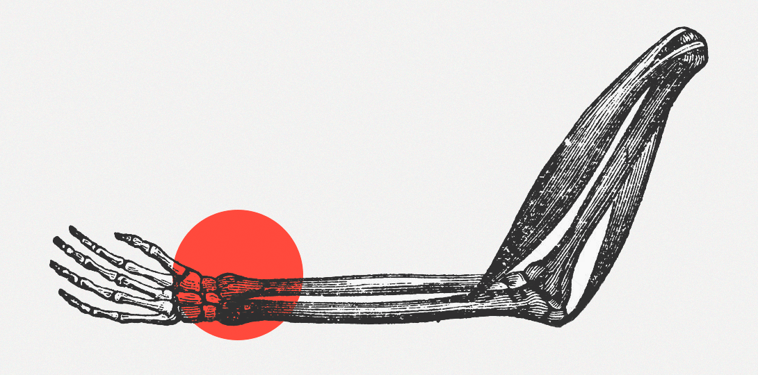 Запястье образовано восемью костями, расположенными в два ряда. Из-за чрезмерных нагрузок или растяжений может начаться воспаление сухожилий и суставной сумки. В спортзале чаще всего причиной становятся неправильный жим со штангой с чрезмерной большим весом, отжимания и подобные упражнения. Травмы обычно сопровождаются болью, отёком, посинением повреждённого участка.