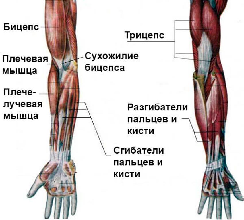 Названия и функции мышц рук