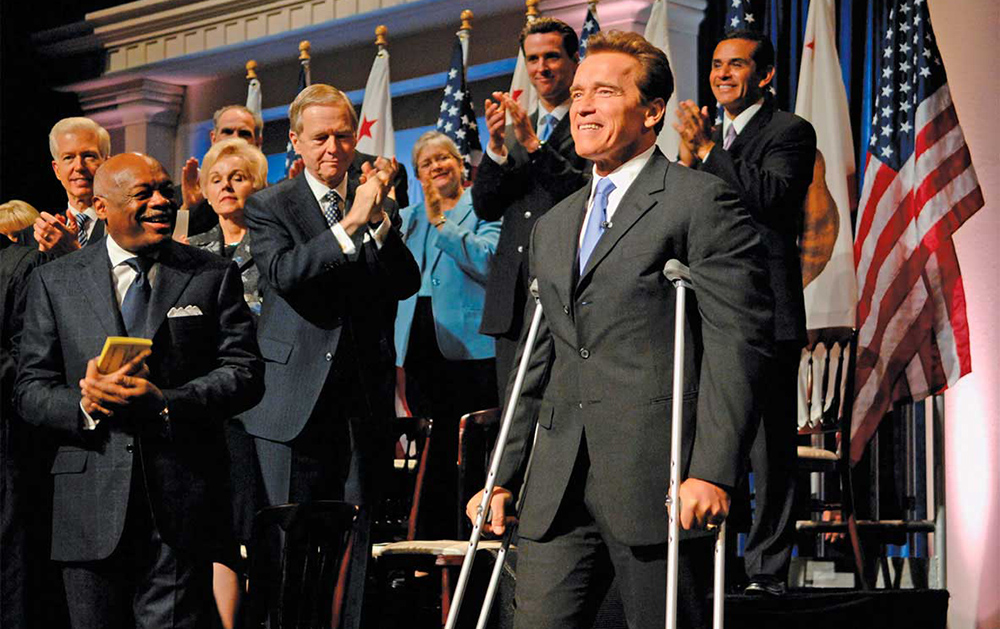 Накануне своей второй инаугурации на должность губернатора Калифорнии в 2006 году Арнольд Шварценеггер сломал ногу, однако решил не отменять и не переносить церемонию, а прийти на нее на костылях