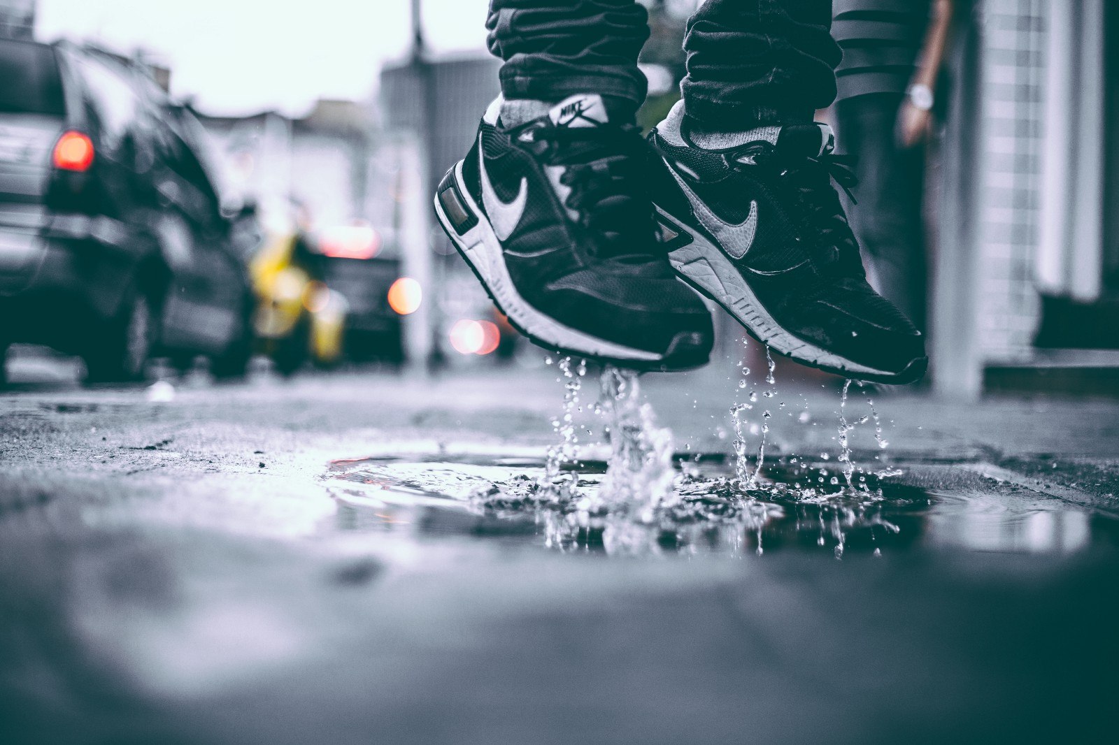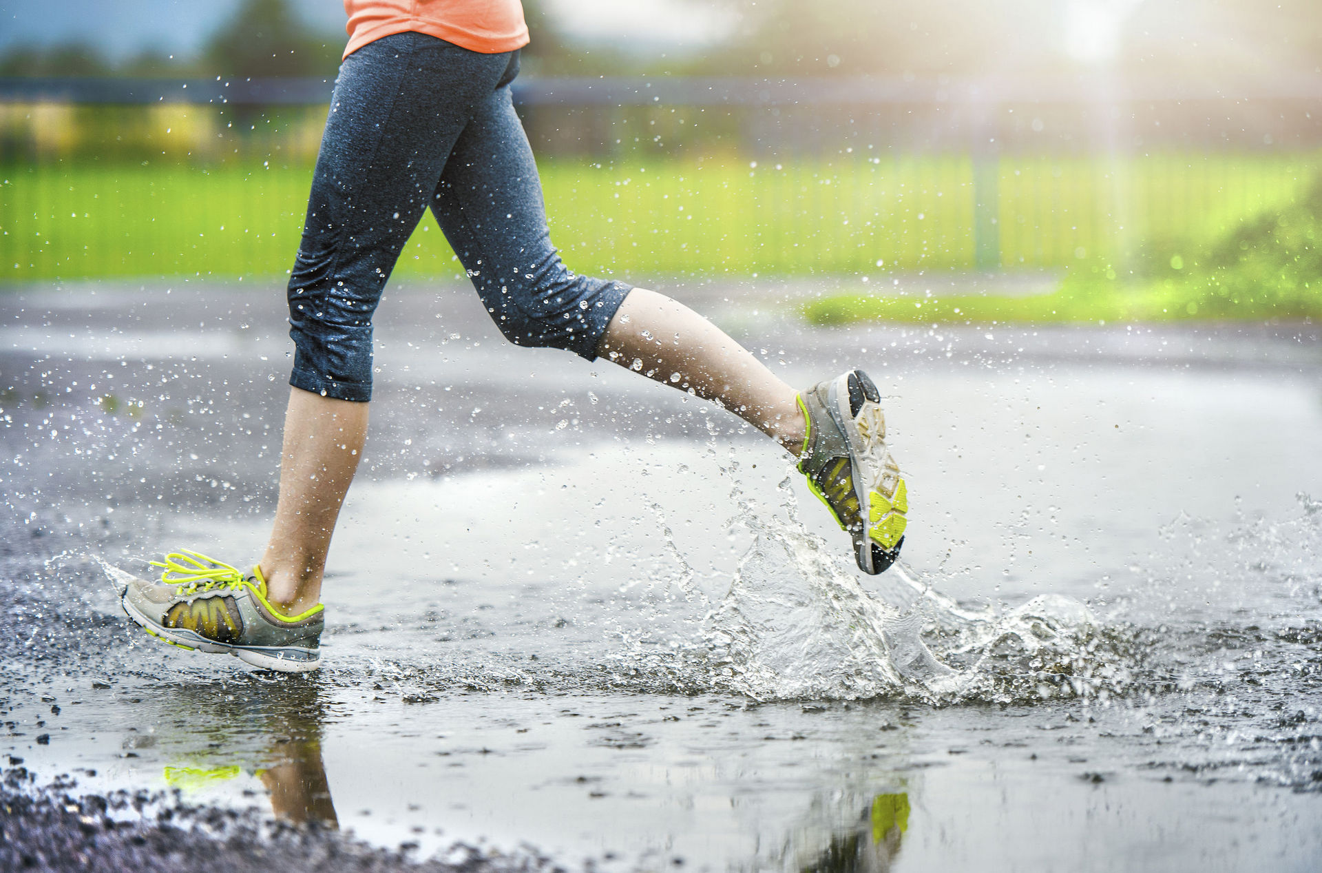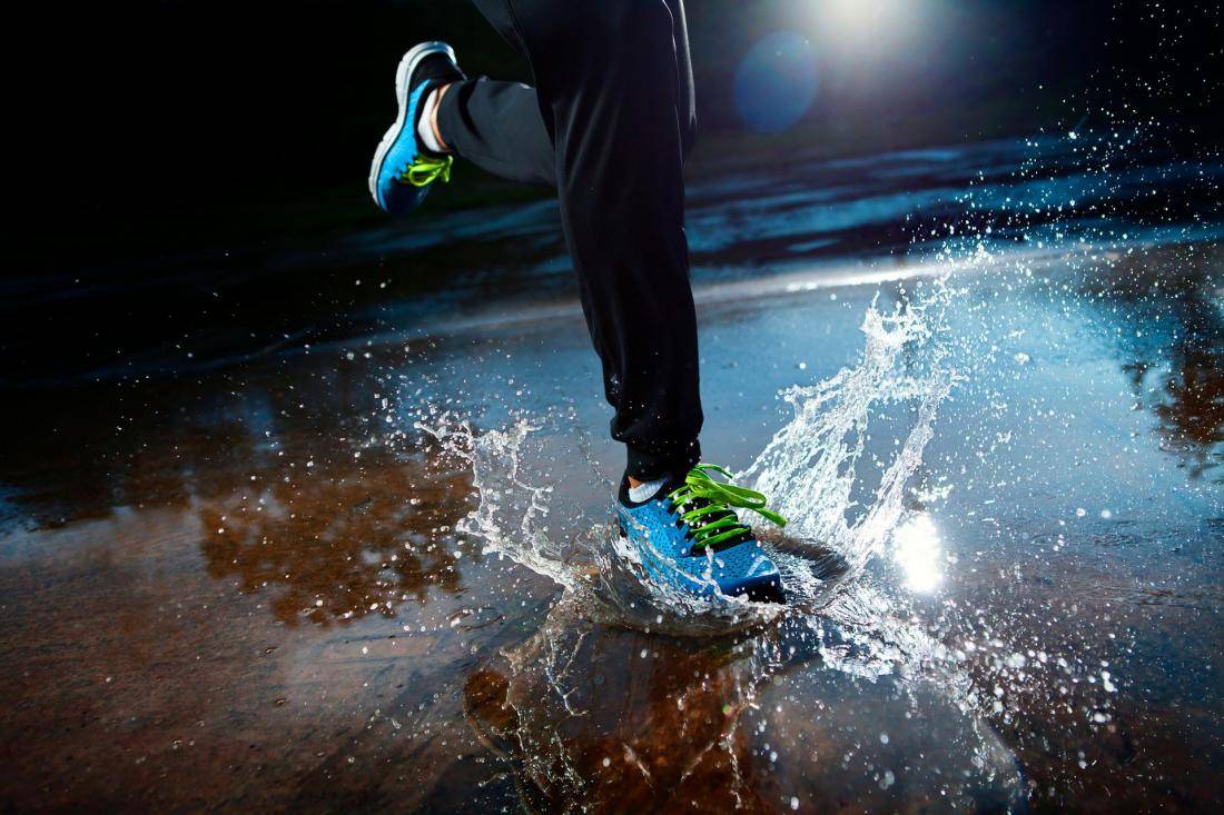 Бег в дождь и ветер – это маленький вызов. Первая неприятность, к которой приводит тренировка во время дождя, – появление натертостей и мозолей на ногах. Причина этого – мокрые кроссовки и носки. В результате кожа стопы разбухает и в ней появляется полость, которая преобразуется в пузырь, что приводит к болезненным ощущениям во время тренировок. Поэтому для таких пробежек лучше использовать мембранную обувь и отказаться от хлопковых носков, которые быстро впитывают влагу и прилипают к телу. Альтернатива – изделия из неопрена, нейлона, полиэстера. Также не лишним будет смазать стопы в зоне пяток вазелином или аналогичным средством и прикрепить несколько лейкопластырей в уязвимых зонах.