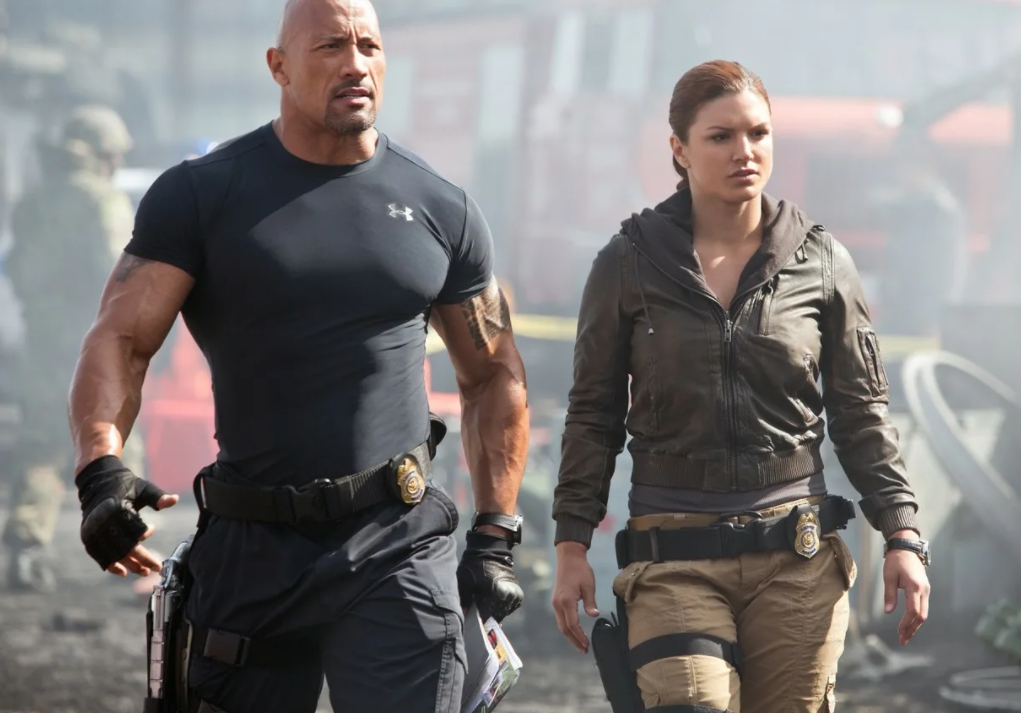 Джина Карано и Дуэйн Джонсон в фильме «Форсаж 6»