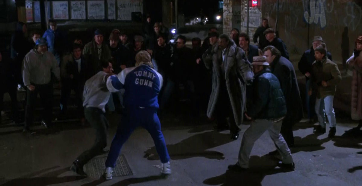 Рокки дерется против своего ученика Томми Гана на улице (Рокки 5, 1990)
