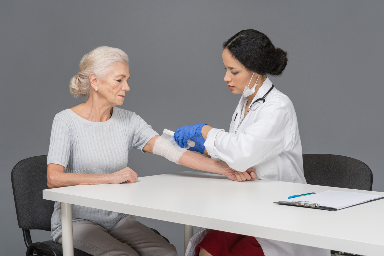 - стерильный бинт может соприкасаться с раной, накладывается только на чистую, продезинфицированную поверхность кожи;