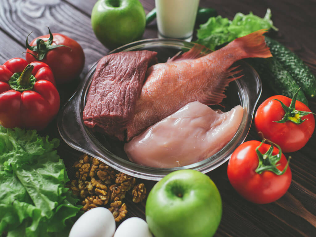 На завтрак во время соблюдения диеты рекомендуют омлеты с тушеными овощами, цельнозерновые тосты, орехи или ореховую пасту. Можно остановиться на овсяной или подобной ей каше, отварном буром рисе с куриной грудкой, нежирном бифштексе. На обед стоит выбрать супы на легких бульонах с крупами, мясо, рыбу с овощным гарниром, кисломолочные продукты, в том числе сыр. Для ужина подойдут сложноуглеводные злаковые, обезжиренный творог, птица, морепродукты, отвары из ягод, шиповника.