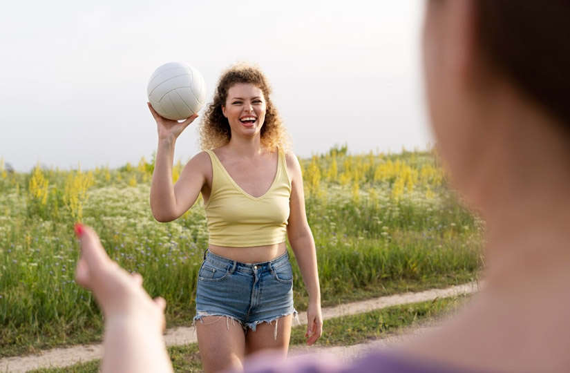 Однако в любительский волейбол вполне можно играть и без сетки – достаточно встать в круг и точно так же подавать друг другу и отбивать мяч. А если место позволяет, можно играть и в командную игру, начертив условную линию, которая будет выполнять роль сетки.