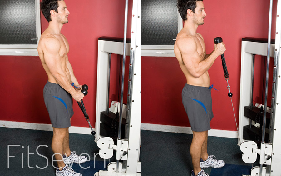 - Разгибания у кроссовера или вертикального блока.
