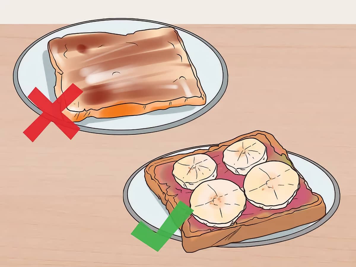 - Например, не ешьте только тосты. Попробуйте намазать тост арахисовым маслом и добавить сверху нарезанные бананы. Или выложите сверху нарезанный авокадо и скушайте со стаканом кефира.