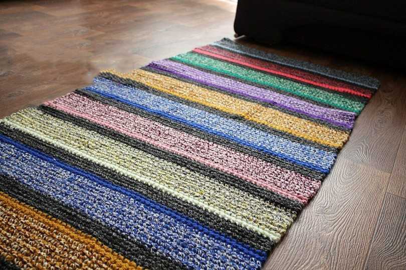 Важно! Разная по типу пряжа может плохо держаться друг за друга. Поэтому со временем коврик может начать распадаться