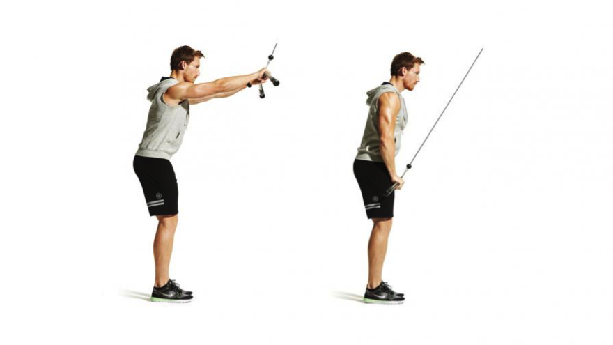 - Жим штанги из-за головы. Базовое упражнение на все пучки дельтовидных мышц.