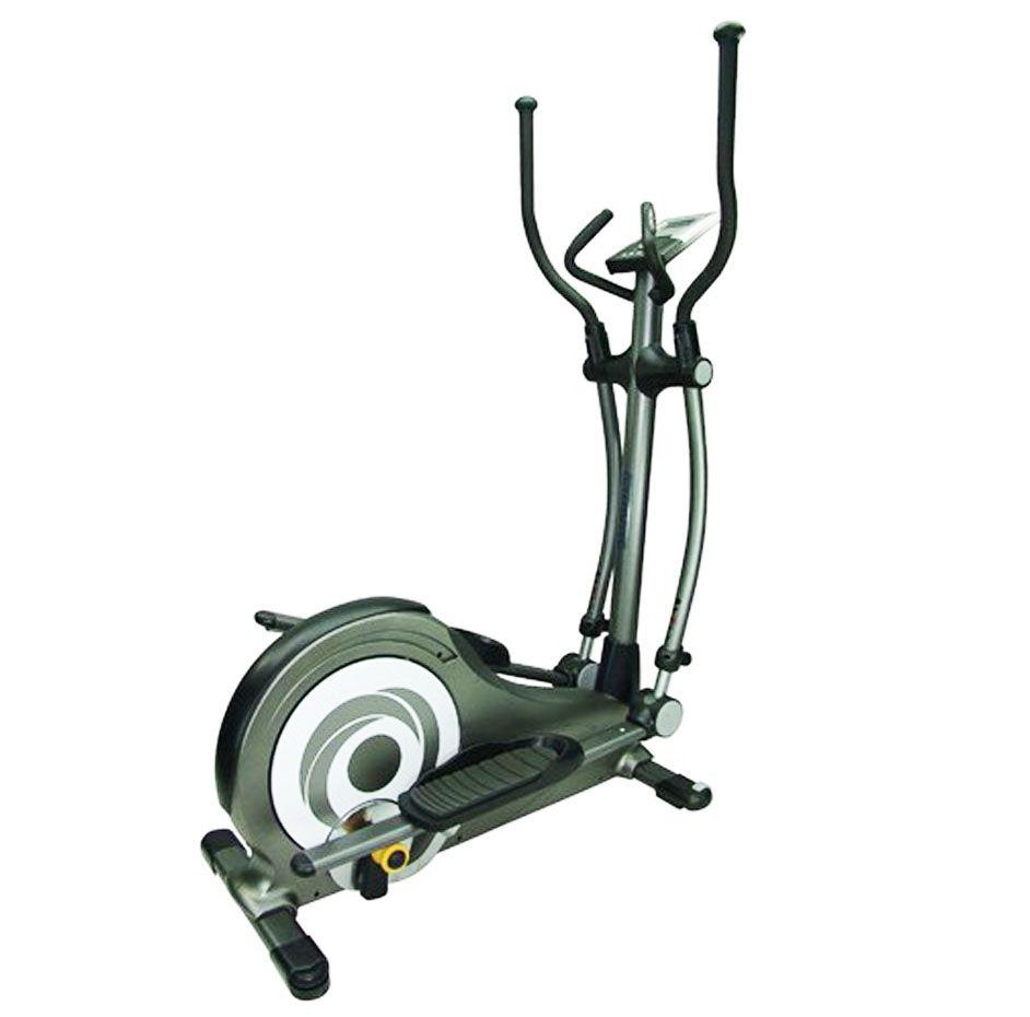 Простой эллиптический тренажер, нагрузка в котором меняется в зависимости от сопротивления магнитов. Маховик в конструкции относительно легкий, двухкилограммовый, располагается сзади. Однако тренажер помогает проработать большую часть групп мышц – настроить можно 8 уровней нагрузки.