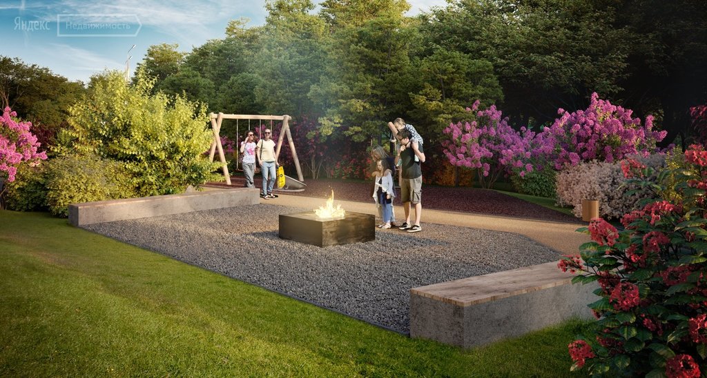 Цветы, лавочки, закрытая территория, отдельно парковые зоны, детские площадки и т.д.