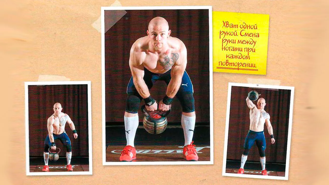 - 53 маховых движений гирей весом 24 кг для мужчин и 16 кг для девушек;