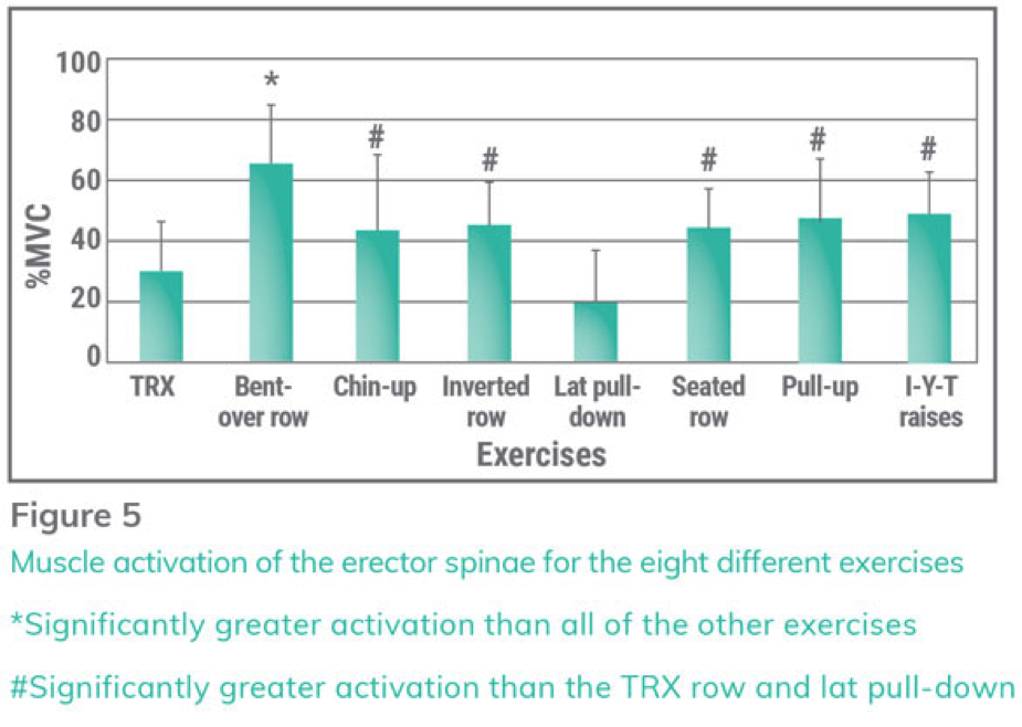 5. Разгибатели спины. Больше всего из протестированных упражнений нагружала тяга в наклоне.