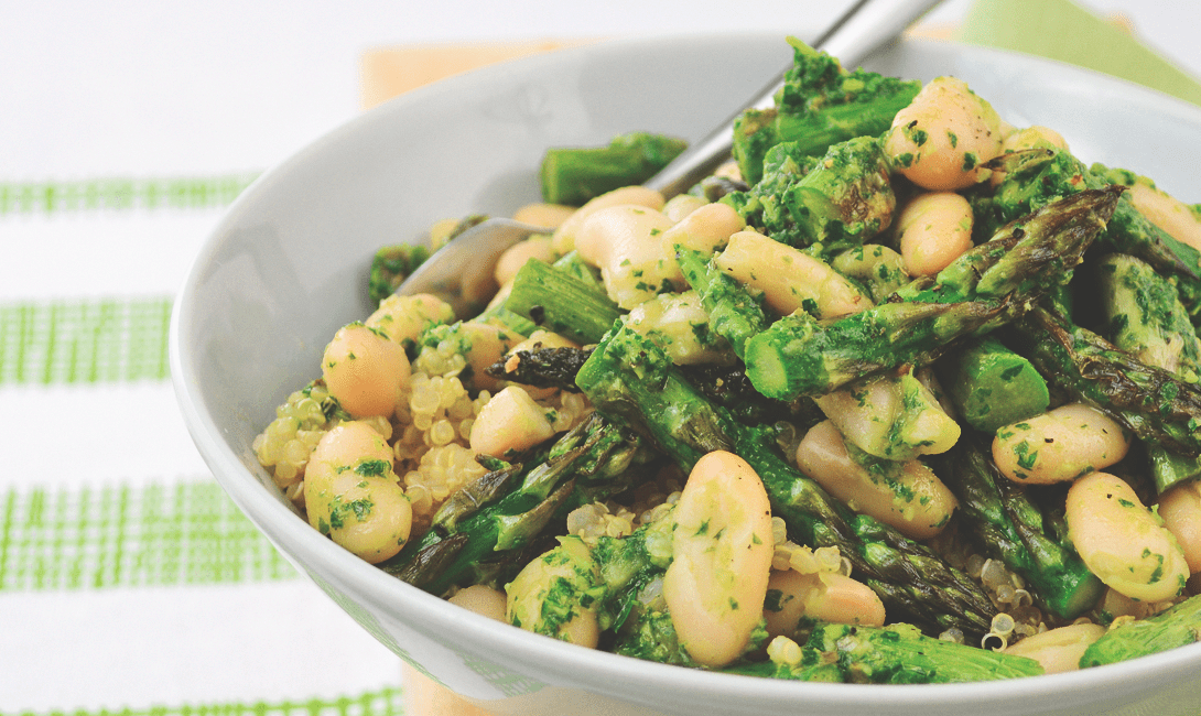 Бобовые, включая фасоль, горох и чечевицу, содержат достаточное количество белка для наращивания мышц. Но просто фасоль — это скучно. Мы обещали сделать твой рацион вкусным. Поэтому запасись песто, кориандром, спаржей и следуй нижеприведенной инструкции.