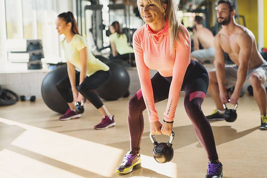 - сочетание процессов жиросжигания и наращивания силы. Упражнения с гирями – «микс» кардио- и анаэробных нагрузок;