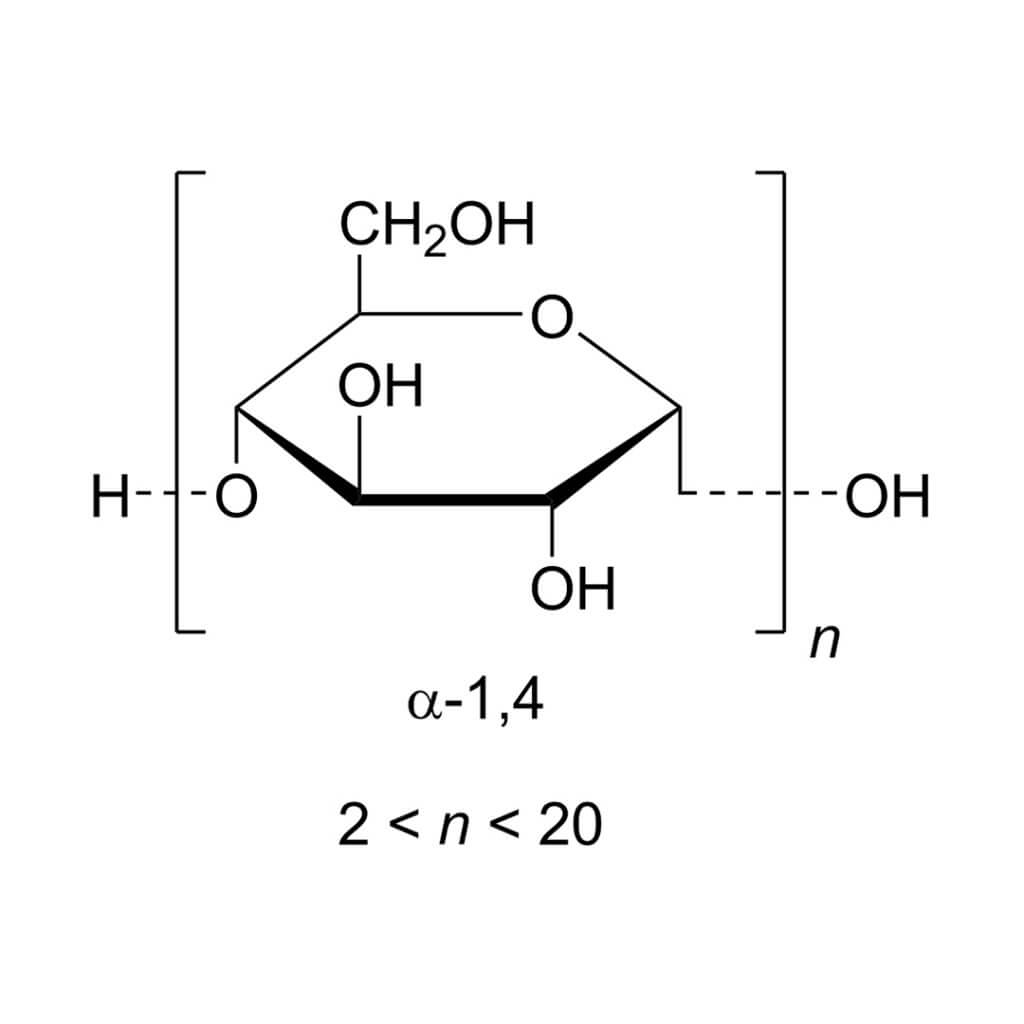 Dextrin is a short chain carbohydrate, and its monomer unit is D-glucose. To synthesize a dextrin molecule, several molecules of glucose are joined with an α (1→4) or α-(1→6) glycosidic bond as a result of a condensation reaction. Starch is broken down into dextrin in the presence of amylase enzyme. It is produced during oral and gastrointestinal digestion of starchy food, during the malting process and caramelization process. Dextrin is further subdivided into the following three categories;