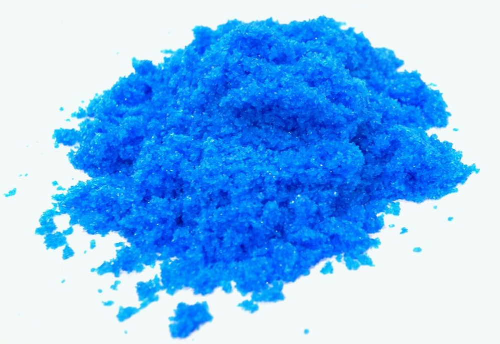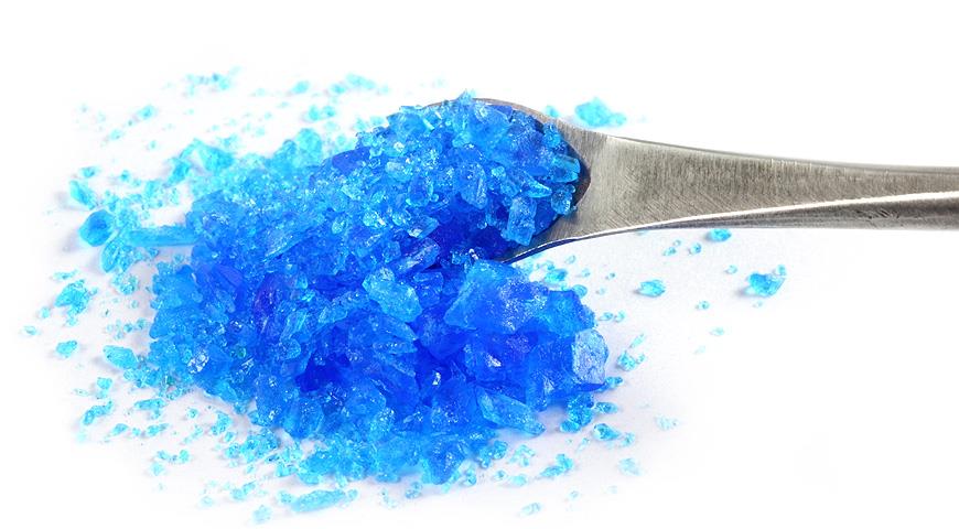 Медный купорос выглядит как порошкообразные кристаллики синего цвета