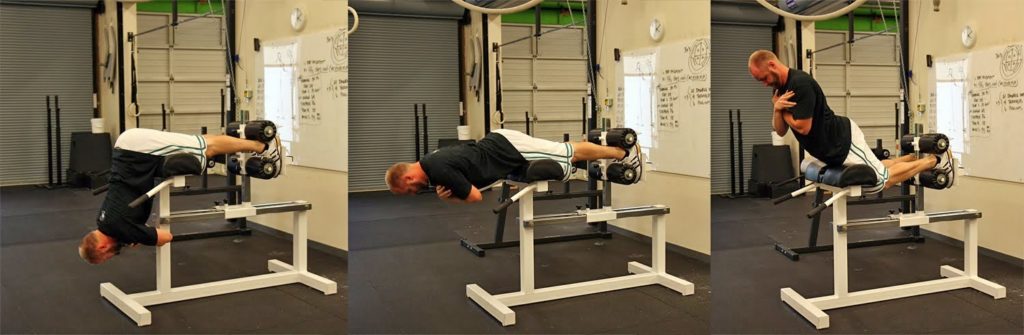 | Гиперэкстензии. Думаю не нужно объяснять, что это за упражнение. Можно выполнять его без отягощения в качестве разминки, либо с отягощением после тяги. Отлично подходит для «забивки» мышц. |