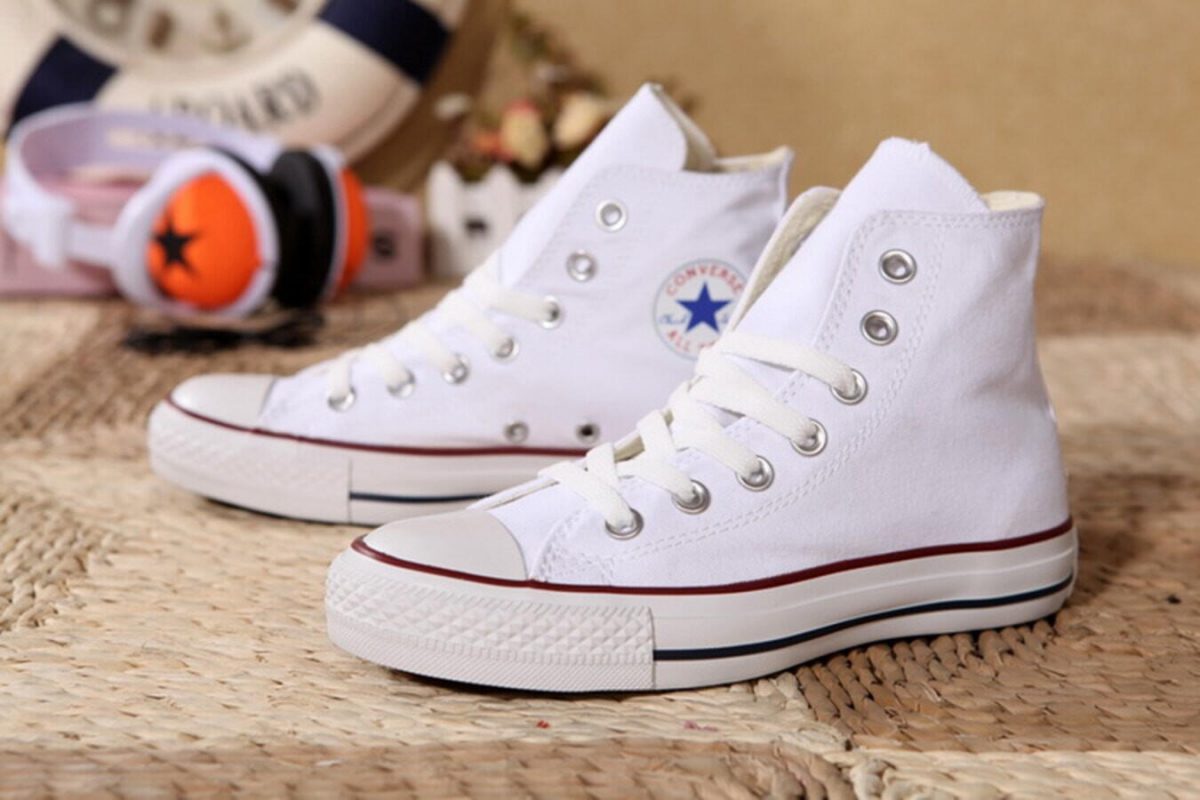 - Белые. Уже который год белые кроссовки появляются в различных луках и стали своего рода универсалом женского гардероба. Если ранее «писком» моды считалась модель на тонкой плоской подошве ниже щиколотки, то теперь этот цвет получил распространение на модели с танкеткой и платформой. Также дизайнеры использовали материалы кипенно-белого цвета для «дутых» сникерсов и кед с высокой голенью до колена.