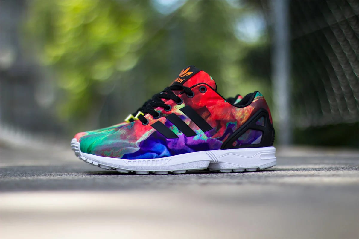 - Радужные полоски могут располагаться на боковой поверхности кроссовка. В 2019 – 2020 появились еще более яркие модели, на которые полностью нанесены различные краски. Стилисты сообщают о дальнейшем развитии этого тренда.