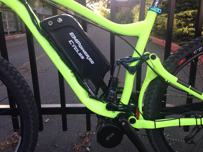 Во время движения мотор отправляет усилие через цепь на заднюю звезду велосипеда. Работа двигателя производится с помощью аккумулятора, который также устанавливается на раме велосипеда. Благодаря контроллеру, возможно регулирование скорости и мощности двигателя. Этот контроллер выглядит, так же как и рычаг газа на руле.