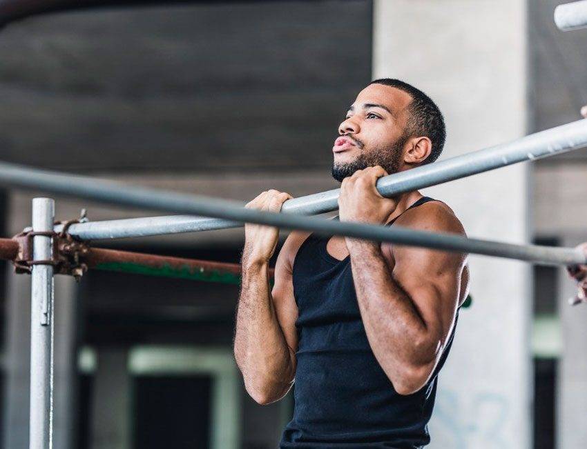 Мужчине желательно выполнять подтягивания минимум 10 раз в медленном темпе без рывков.