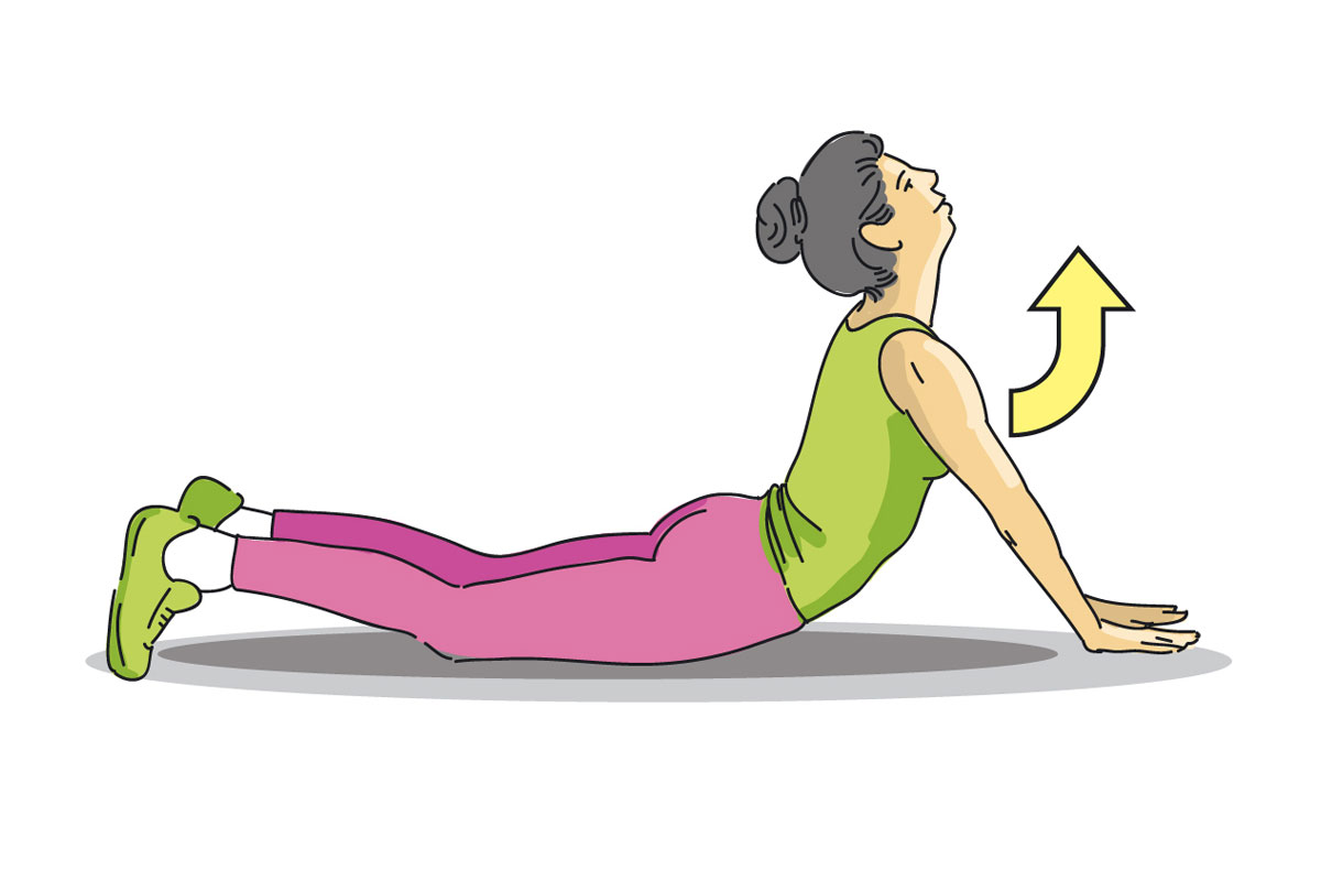 Упражнение на заминку и на развитие подвижности позвоночника. Лежа на полу животом вниз, за счет мышц спины поднимите верхнюю часть корпуса. Не отталкивайтесь руками, используйте их лишь для поддержки. Задержитесь в верхней точке, напрягая абдоминальные мышцы. 2-3 подхода по 30-60 секунд