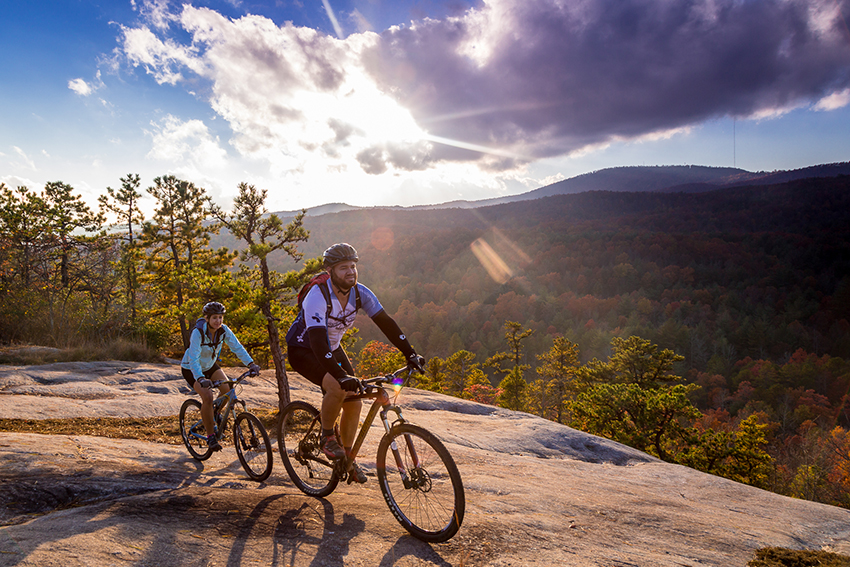 Езда по горам или бугристым велотрекам — единственный случай, когда человек может передвигаться не исключительно сидя. Допускается также и возможность становления спортсмена на педали. Однако нужно понимать, что это очень не эргономичное положение, при котором все мышцы устают быстрее.