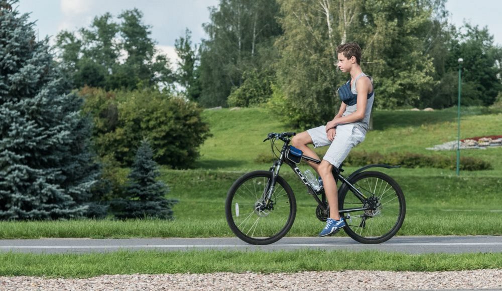 - Как вариант, можно попробовать отпускать одну руку, потом другую. Проще говоря, вести велосипед одной рукой.