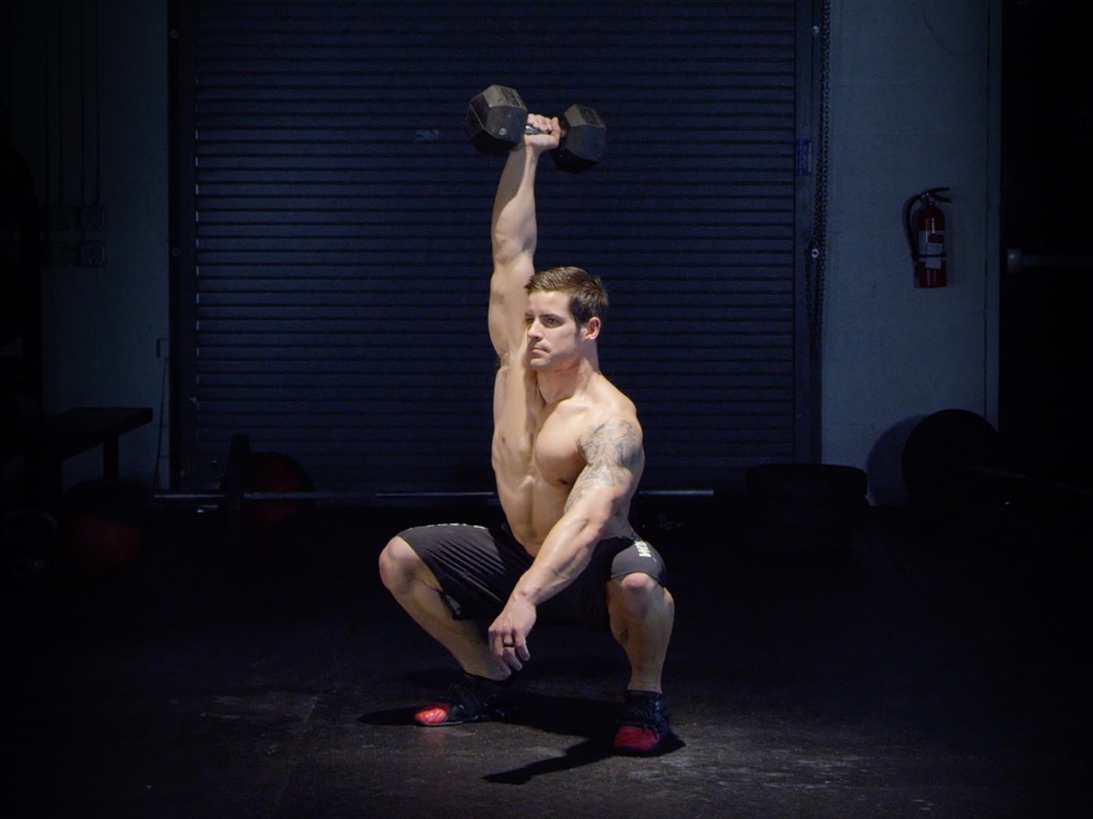 Приседания с одной гантелей над головой. Исходное положение — ноги на ширине плеч, спортивное снаряжение держится обеими руками (обычно согнутыми в локтях). За счет распределения нагрузки такой присед с гантелями над головой помогает качественно прорабатывать ягодицы. Чтобы выполнить правильно, нужно занять исходное положение, выпрямить спину, присесть, задержавшись в крайней точке на несколько секунд. Спина при этом остается прямой, а бедра должны быть расположены горизонтально. Вернуться в исходное положение.