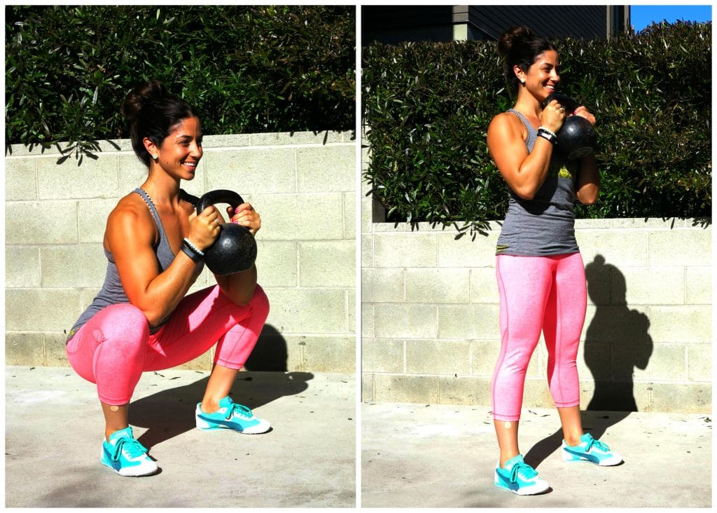 Поднимайтесь из приседа быстро, решительно. Выполните требуемое количество повторений. Число подходов – обычно 3-5.