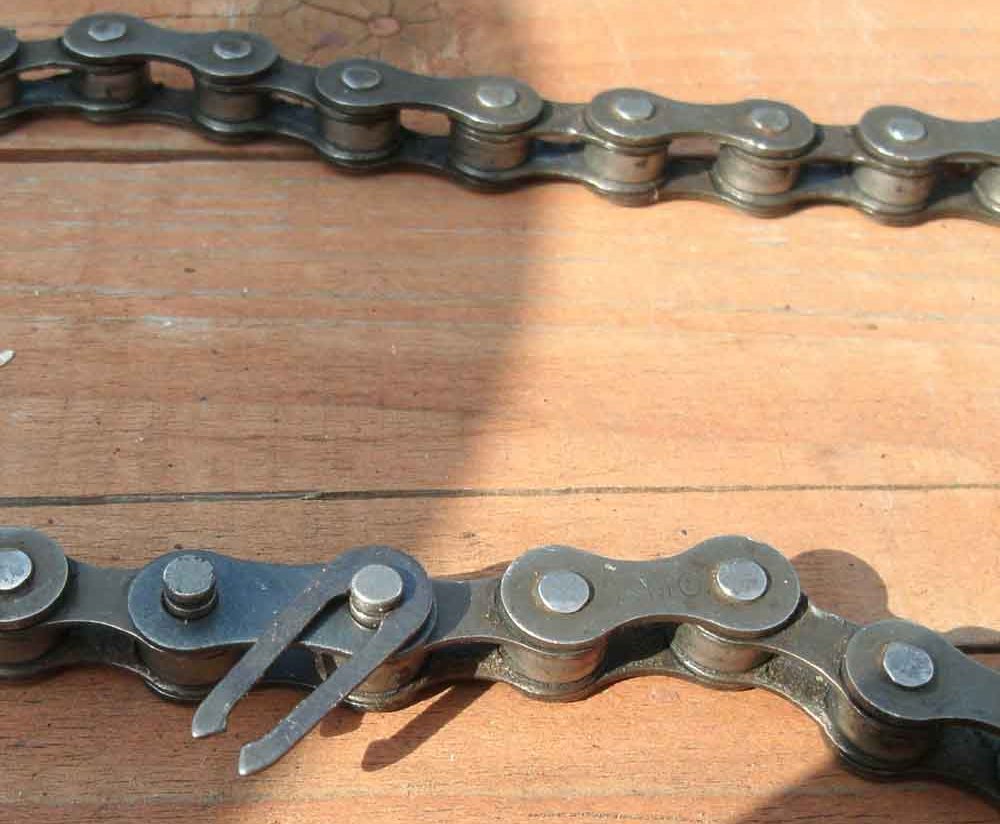 2. Искривление звеньев. Если вы заметили, что это звенья искривились, то у вас два варианта: полная замена цепи, или избавление от согнутых звеньев.