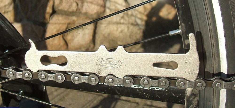 - Производим регулировку цепи, смещая колесо по отношению к звезде.