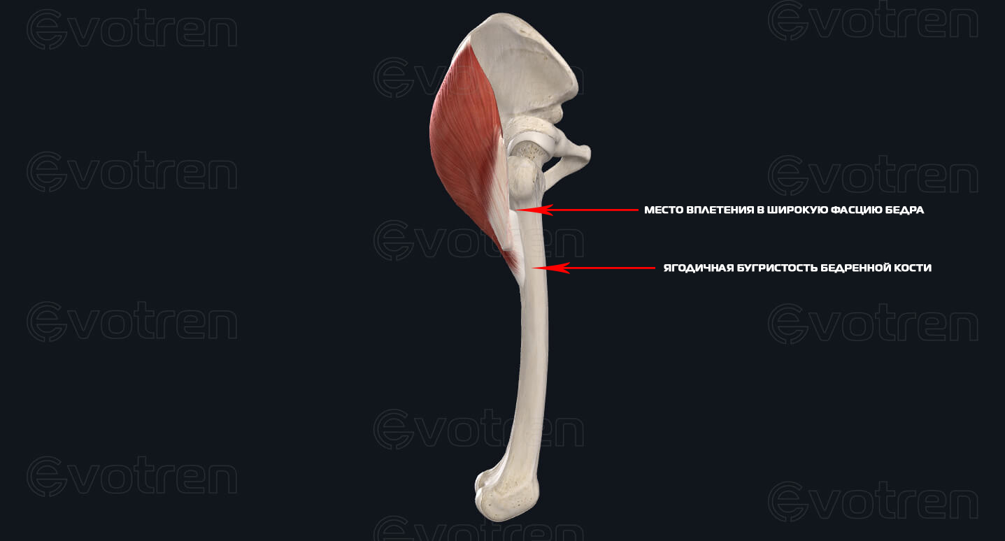 - Задняя (дорсальная) ягодичная линия подвздошной кости;