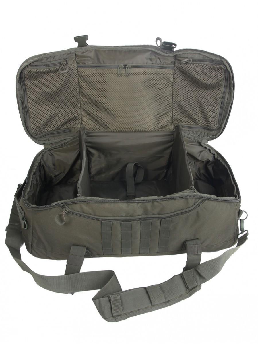 Сумка рюкзак тактическая с хорошей вместимостью. Предусмотрены отсеки для размещения бронежилета, шлема, верхней одежды, спортивного снаряжения. Предназначена для спортсменов и военных. Снаружи предусмотрено несколько маленьких карманов для важных мелочей, которые должны находиться под рукой.