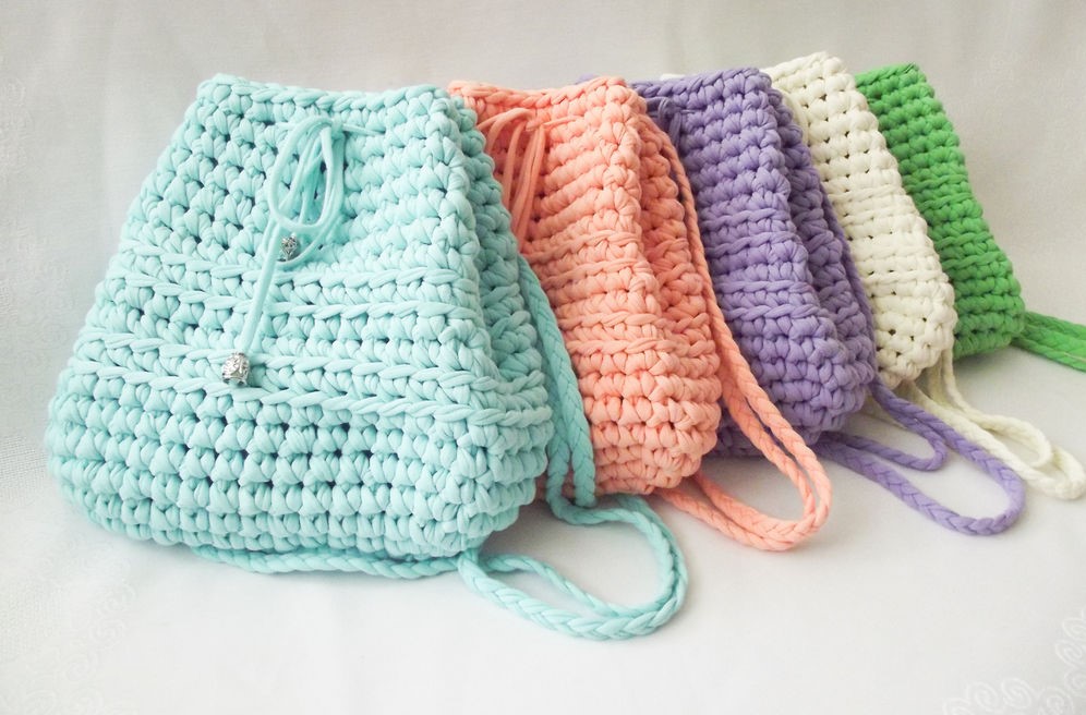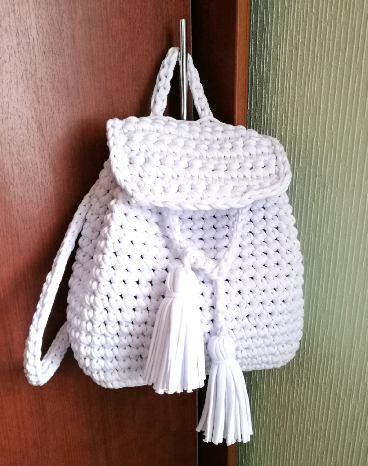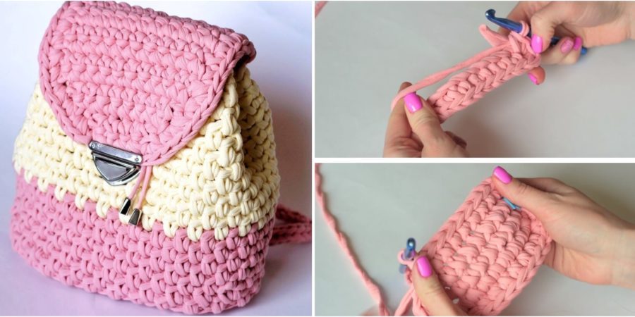 Рюкзак крючком из трикотажной пряжи схема, с описанием и фото