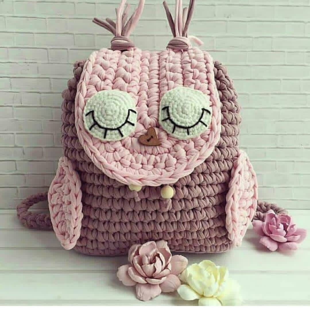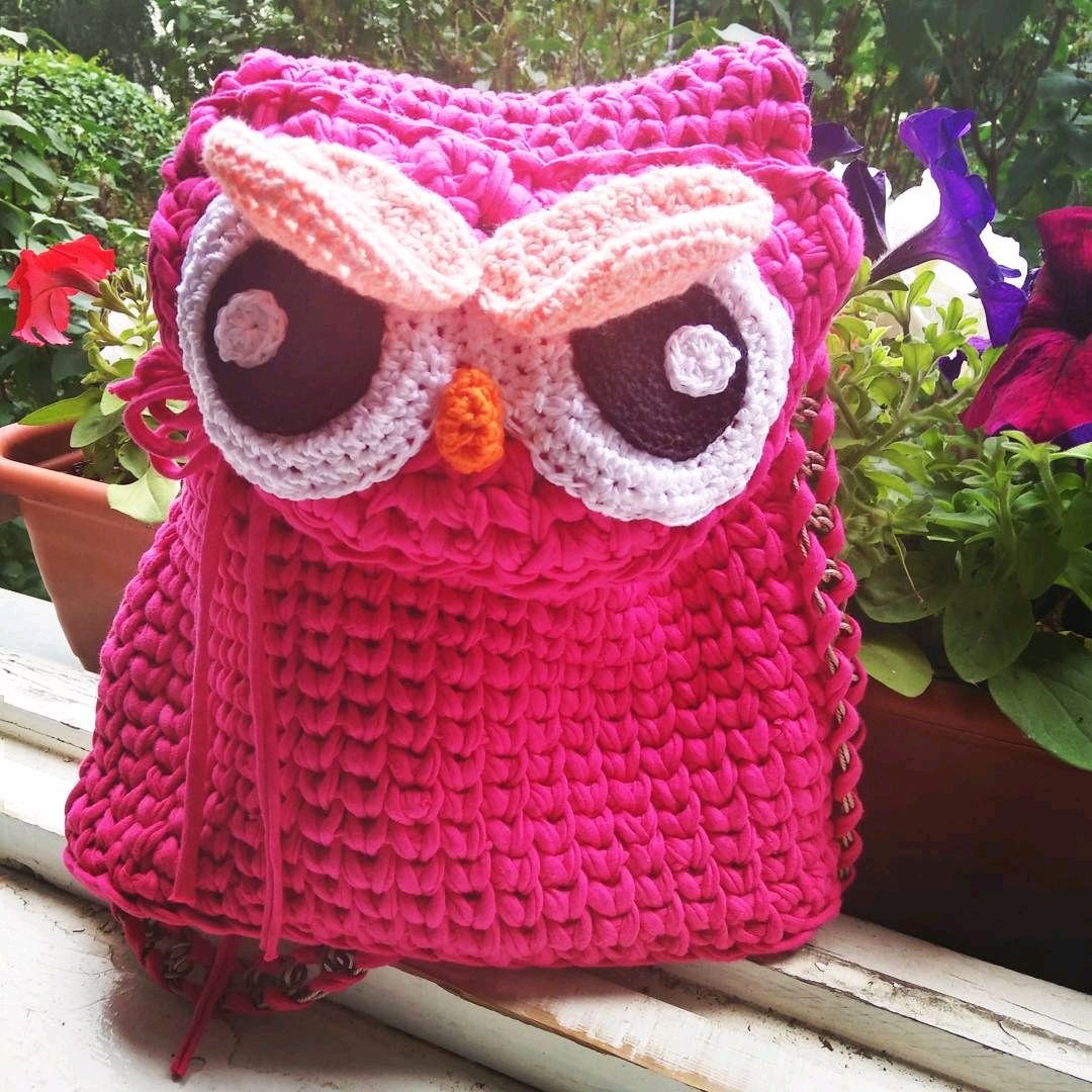 Рюкзак сова из трикотажной пряжи, схема пошагово