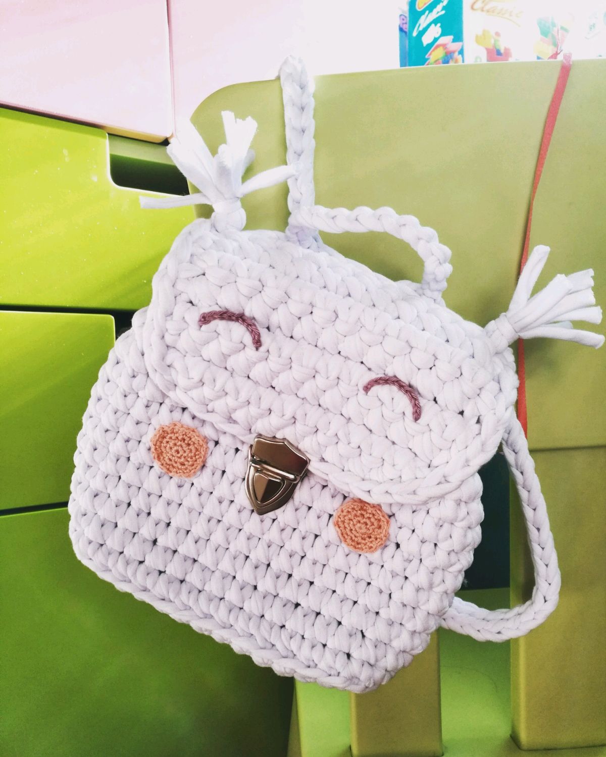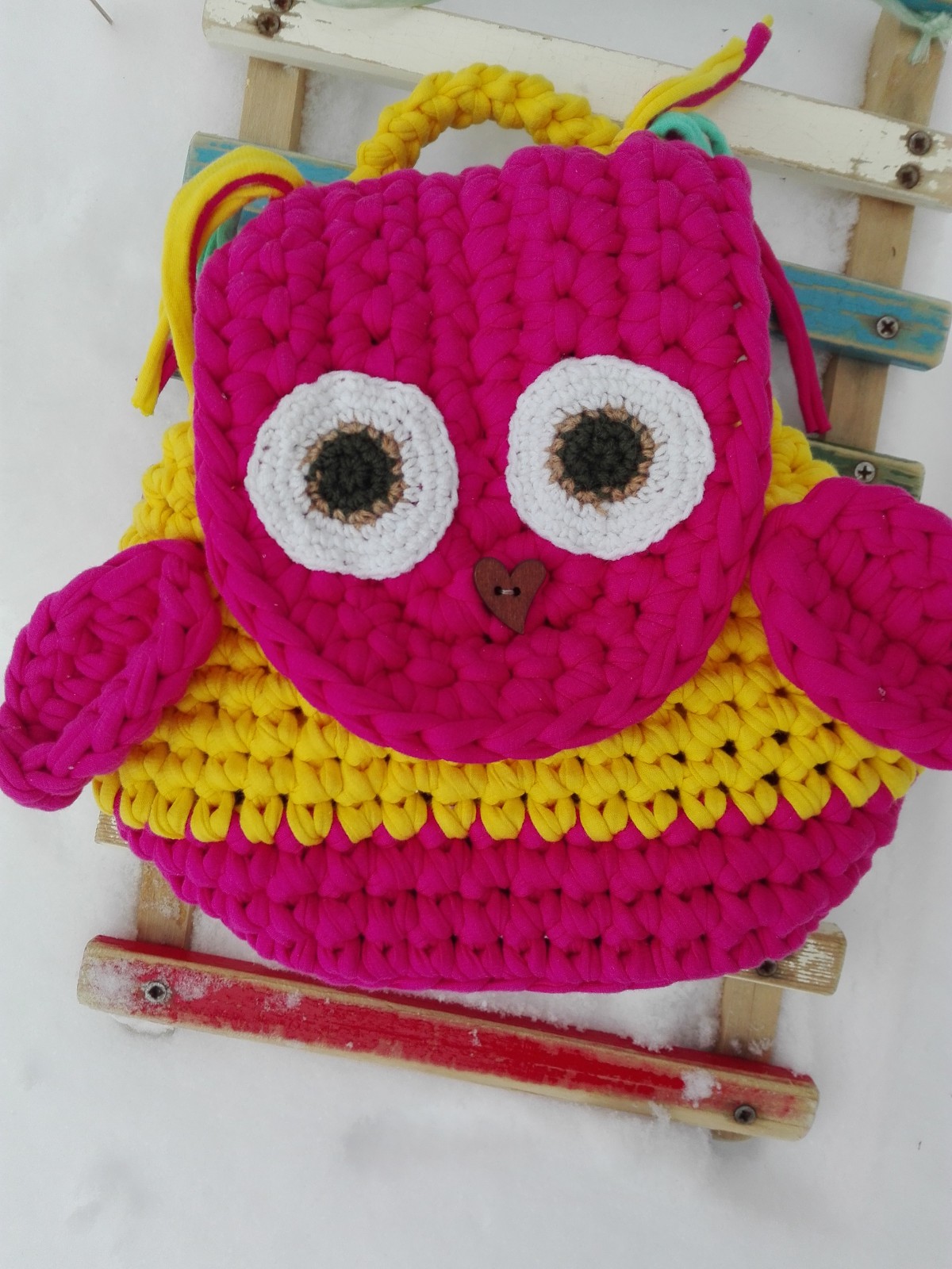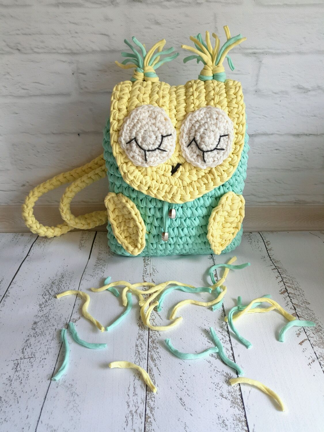 Веселый рюкзак из ленточной пряжи