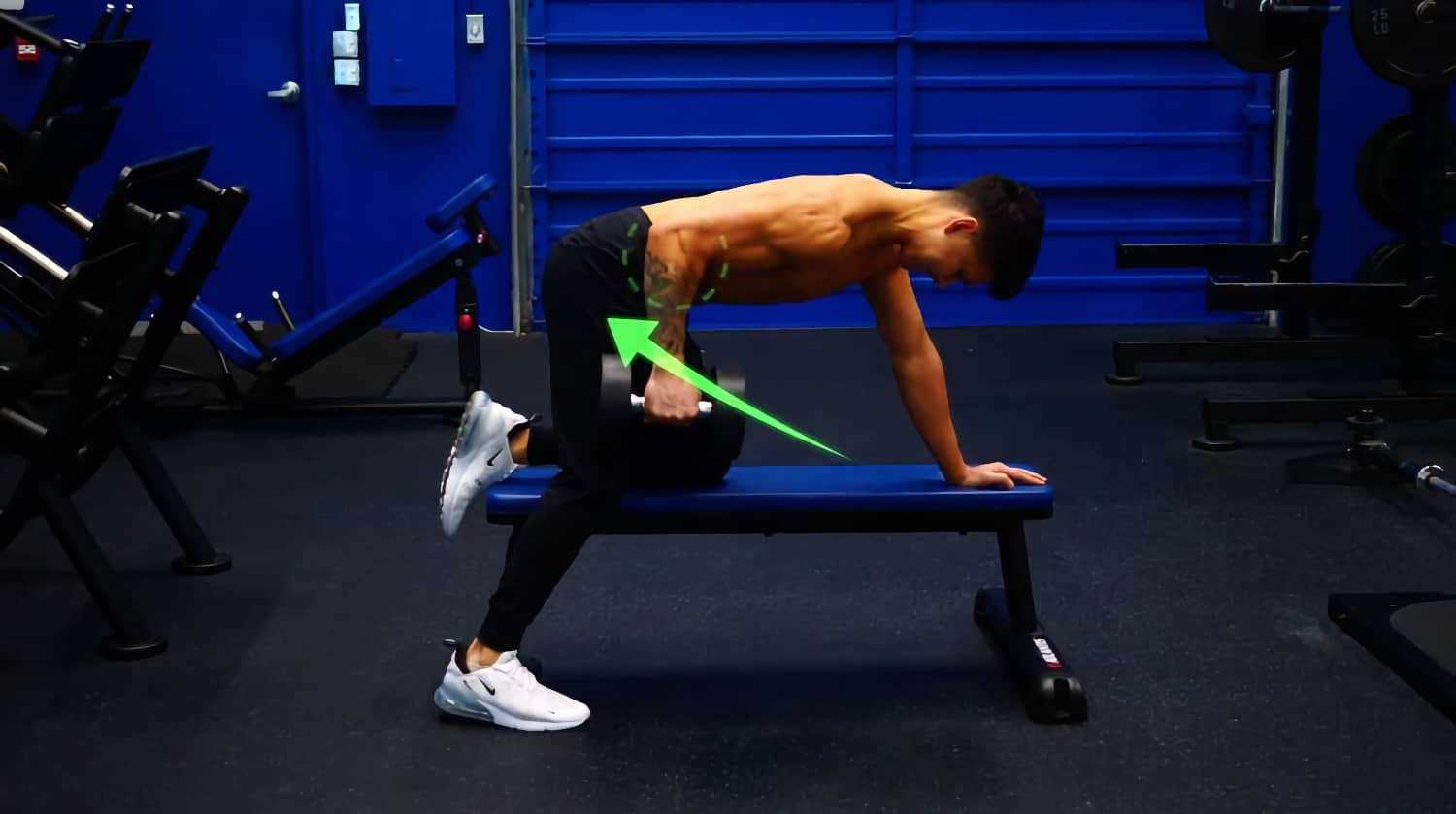 Тяга гантели одной рукой в упоре — отличное изолирующее упражнение для «добивания» мышц в конце тренировки.