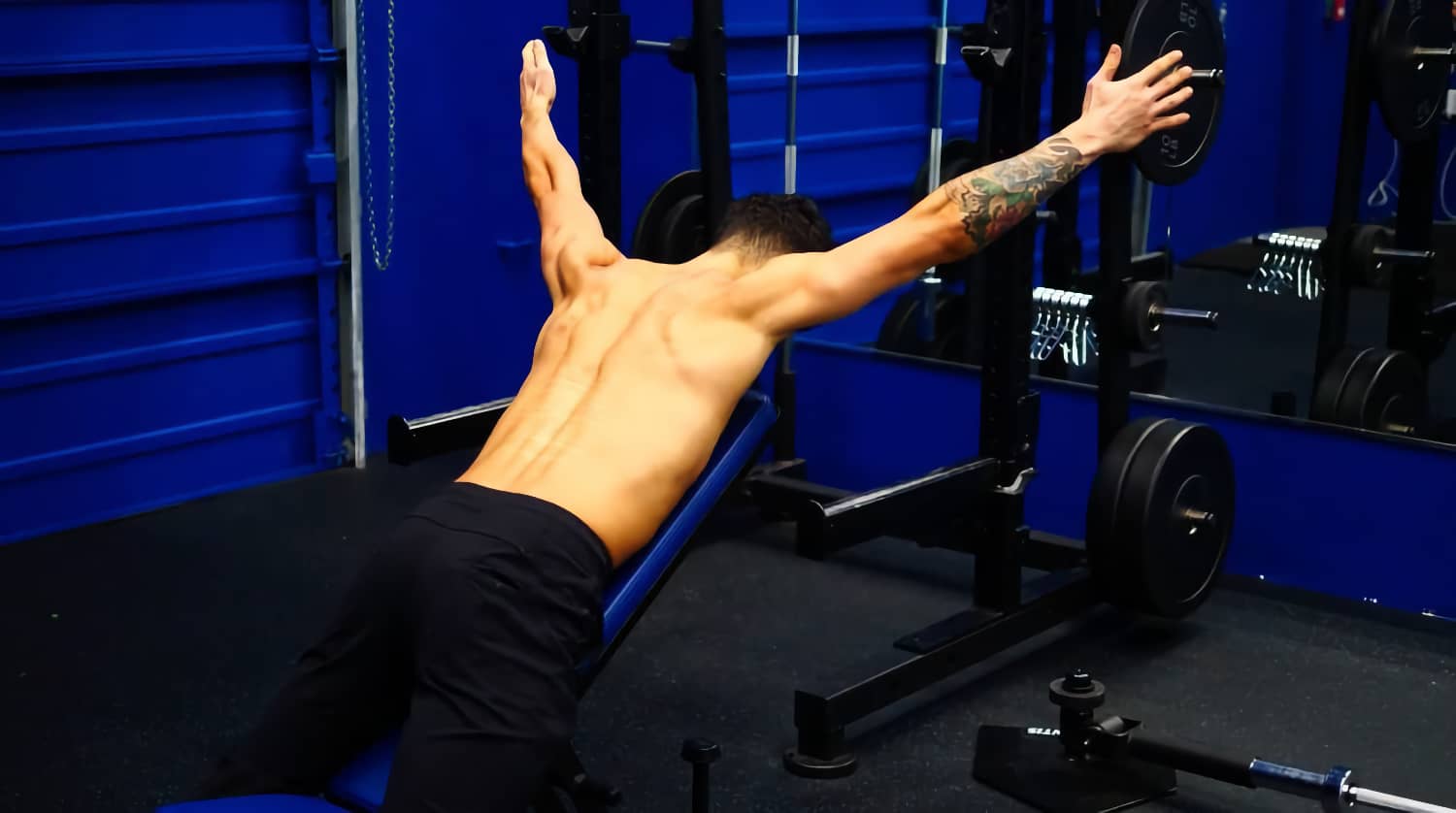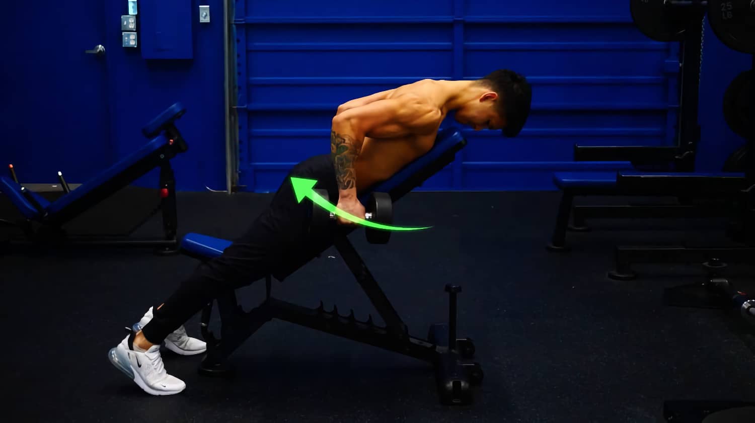 3. Тяга с гантелями в упоре на лавку для широчайших