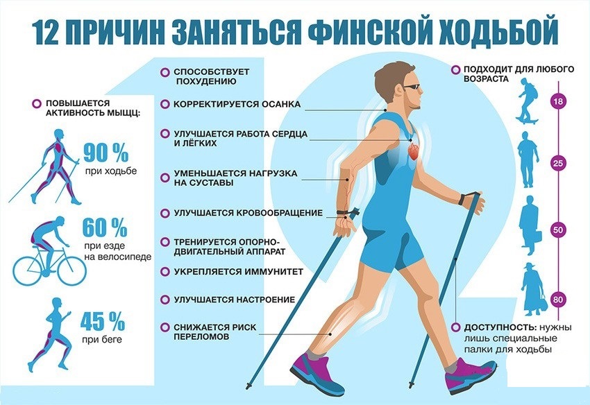 Вы можете выбрать для себя тот вид ходьбы, который подходит именно вам. Если у вас болят суставы, вам не стоит заниматься спортивной ходьбой — приобретите палки и занимайтесь скандинавской ходьбой. Если же вы хотите похудеть и сбросить вес, вам подойдет средний темп спортивной ходьбы, ходьба в горку, интервальная ходьба.