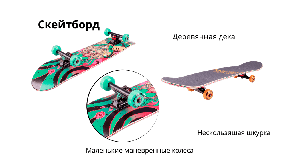 Стороннему наблюдателю кажется, что все скейты на одно лицо. Просто доска с колесиками. Поэтому начинающий любитель выбирает первый попавшийся инвентарь. В результате сталкивается с лишними проблемами.