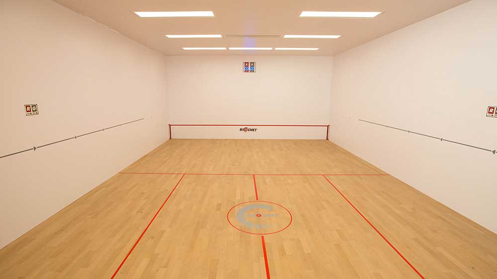 Часть для аута располагается также и на боковых стенах. На полу расчерчены сегменты подачи, средняя и передняя зоны. Если мяч отскакивает от звуковой доски, она сигнализирует об этом. Стены корта изготавливаются из сверхпрочного стекла, такой же материал используется при создании бортов поля для хоккея. Количество игроков — два или четыре. Ракетки напоминают теннисные, а вот мяч отличается — он намного мягче.