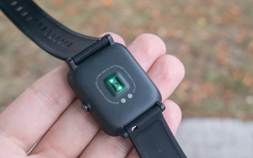 Встроенный пульсометр расположен на обратной стороне изделия. За измерение пульса ответственен оптический датчик сердечного ритма. Пульсометр фитнес браслета Xiaomi Amazfit Bip выдает достаточно точные показатели, но только при соблюдении ряда условий (на руке негустой волосяной покров и часы плотно прижаты). При занятиях спортом данные могут искажаться из-за того, что рука начинает потеть.