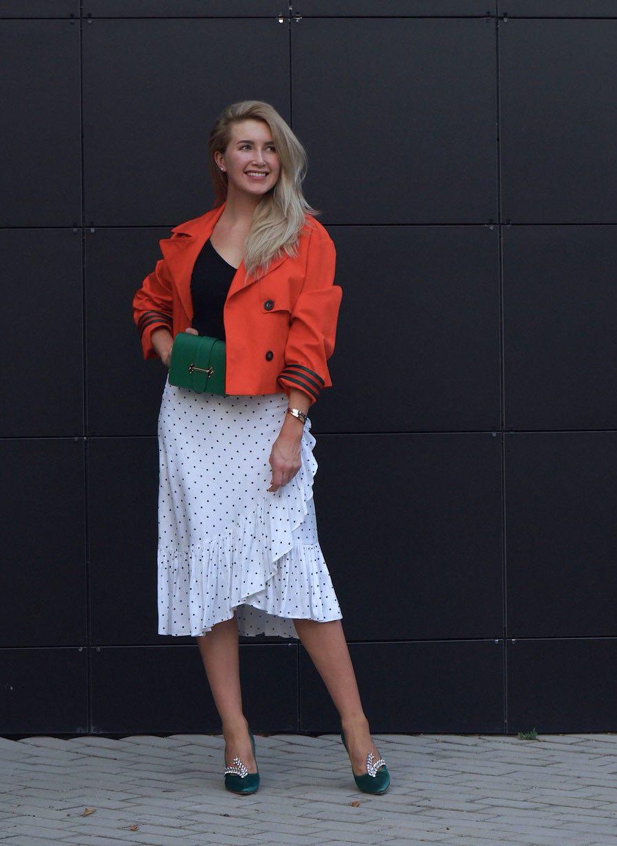 С юбками здорово выглядят принтованные аксессуары. Можно создать очень воздушный образ, соединив пастельные тона и мраморный или змеиный принт.