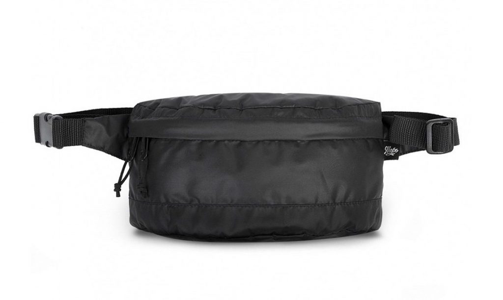 - При изготовлении используется неброская расцветка, к примеру, это черная сумка-бананка с надписью названия бренда.