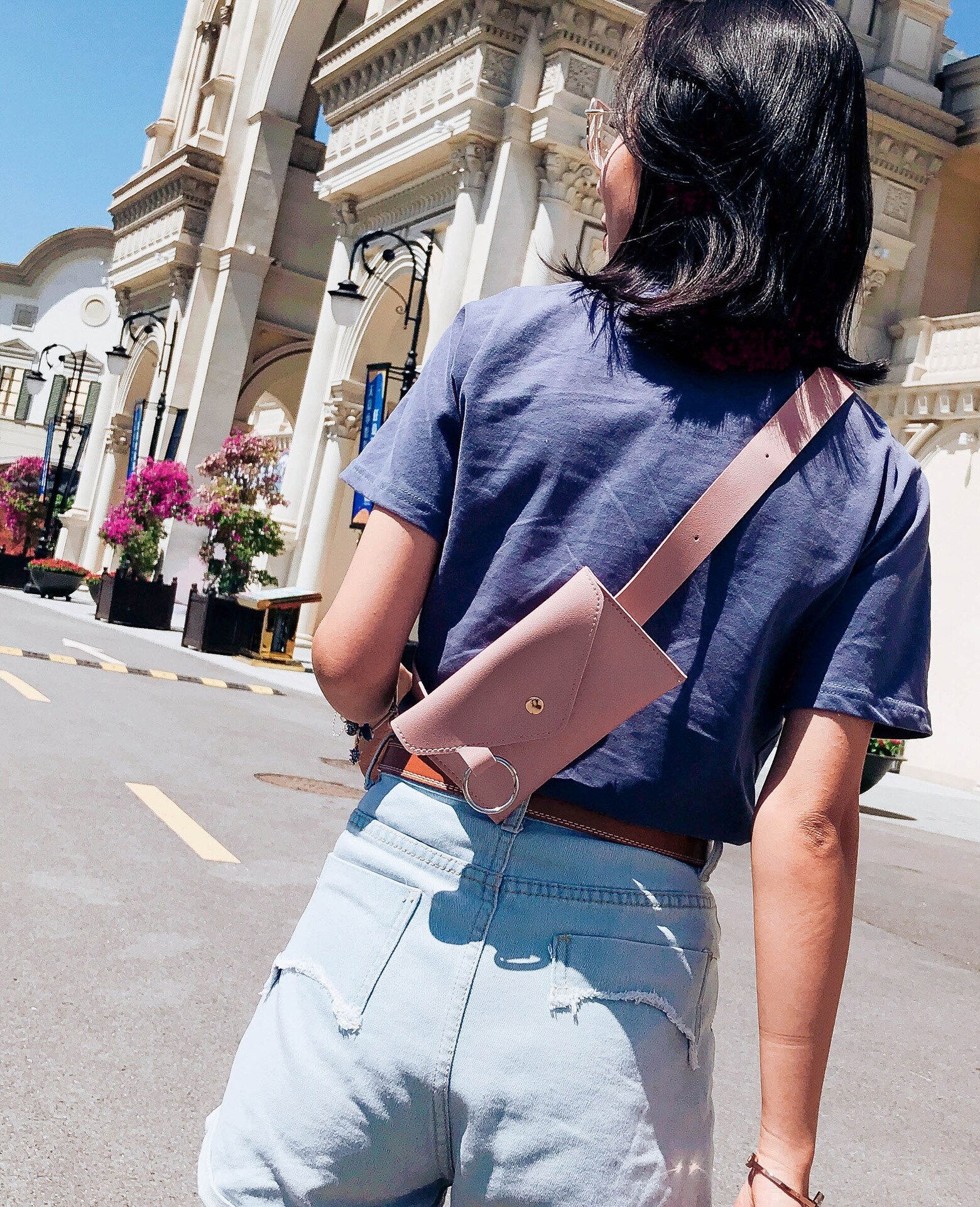 Миниатюрные поясные сумочки на ремне отлично смотрятся с джинсовыми шортами, джинсами и брюками.