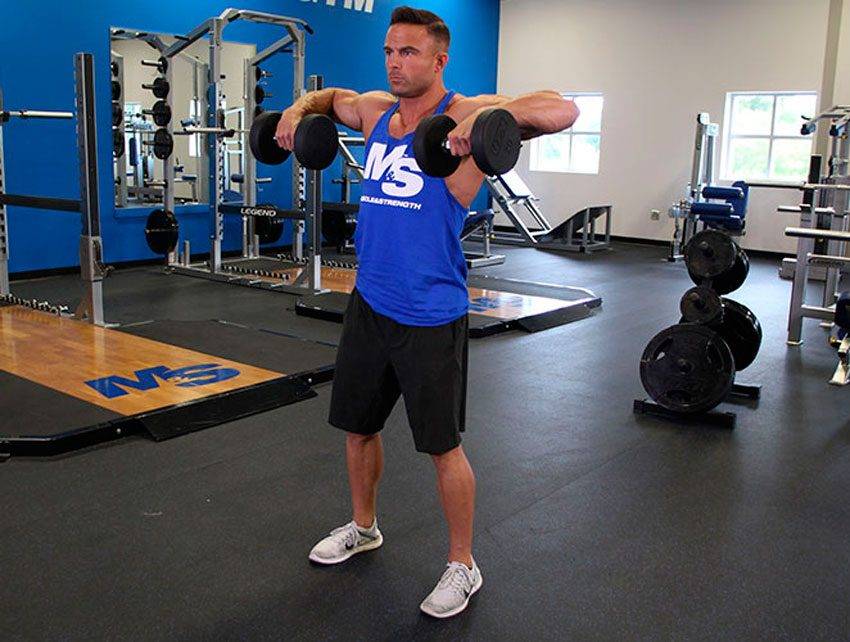 - Старайтесь выполнять движение за счет силы дельтовидных мышц.