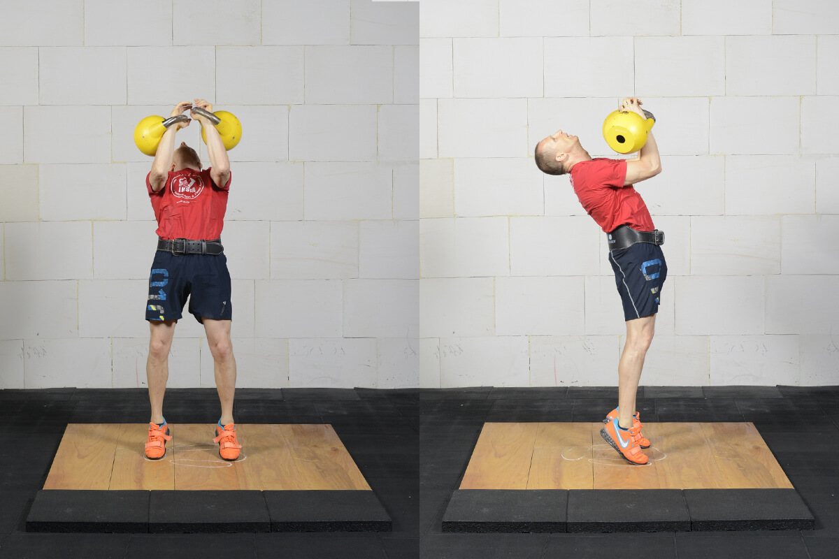 При выполнении толчка гири мышцами-стабилизаторами являются мышцы спины. Если у вас слабые длинные мышцы спины, вам стоит укрепить их, выполняя становую тягу или гиперэкстензию.