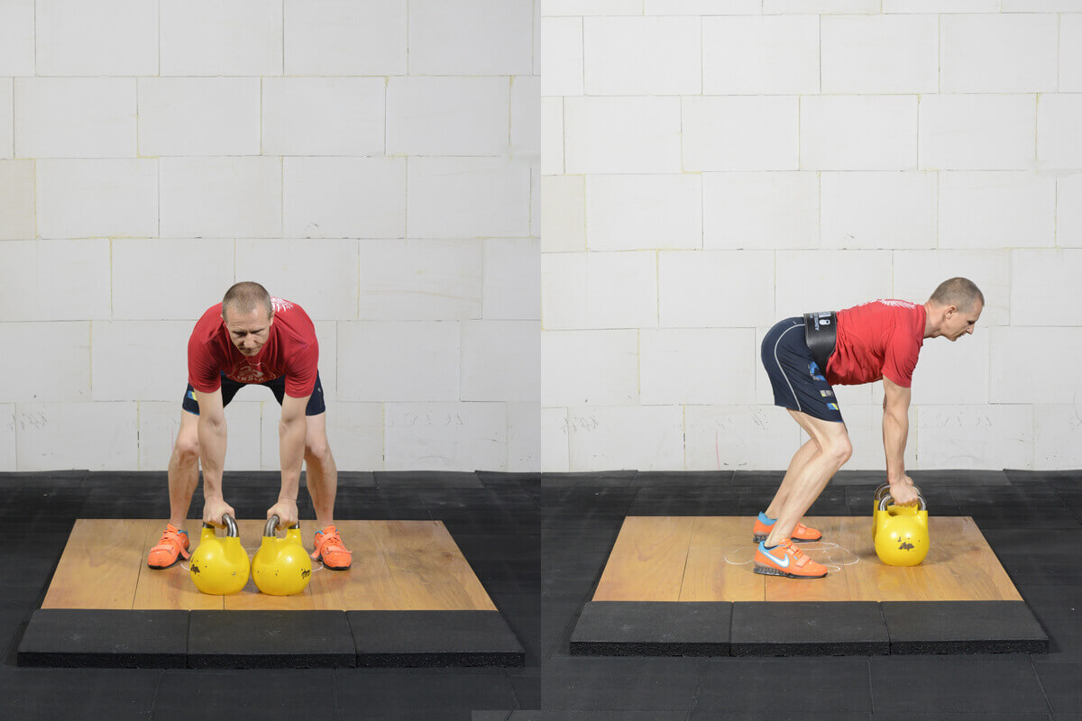 - ноги чуть шире плеч, возьмитесь за гирю двумя руками